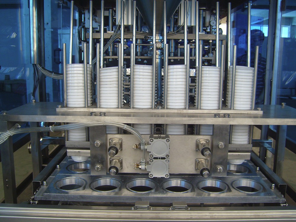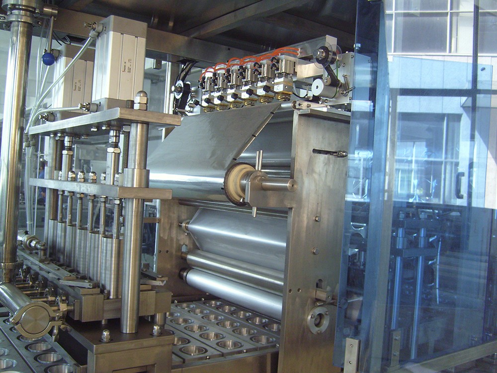 SKB系列全自動灌裝封口機是適用于預制塑杯、紙杯或紙塑杯通用的直線步進式灌裝封口設備,該機型采用卷膜。該機可自動完成下杯、灌裝、切膜、對標、打碼、封口、出杯、輸送等動作。標準型機架的設備適用于50-300毫升/杯的灌裝容量,特別設計的物料灌裝系統和CIP清洗裝置適用于灌注生產過程中衛生要求嚴格的產品。該機型可用于純牛奶、酸奶、乳飲料、豆漿、果汁、果凍、冰淇淋、調味品、日化等液體或半黏稠狀物料的灌裝,可定制含顆粒物料的灌裝系統;除常溫灌裝外,也可定制適用于熱灌裝的系統。 可根據用戶需求,設計新機型。
